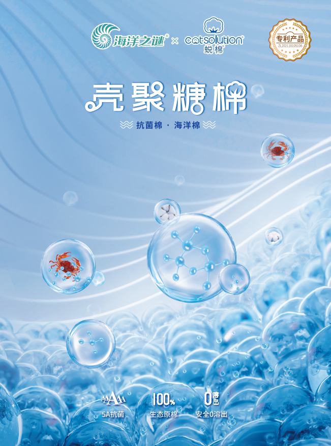 公司現主推的產品之一——cotsolution®—蛻棉®殼聚糖抗菌棉,利用生物大分子改性技術,將殼聚糖基團反應到天然纖維的分子鏈上,制得可耐洗100次以上的生物纖維。一朵棉花,無限可能。