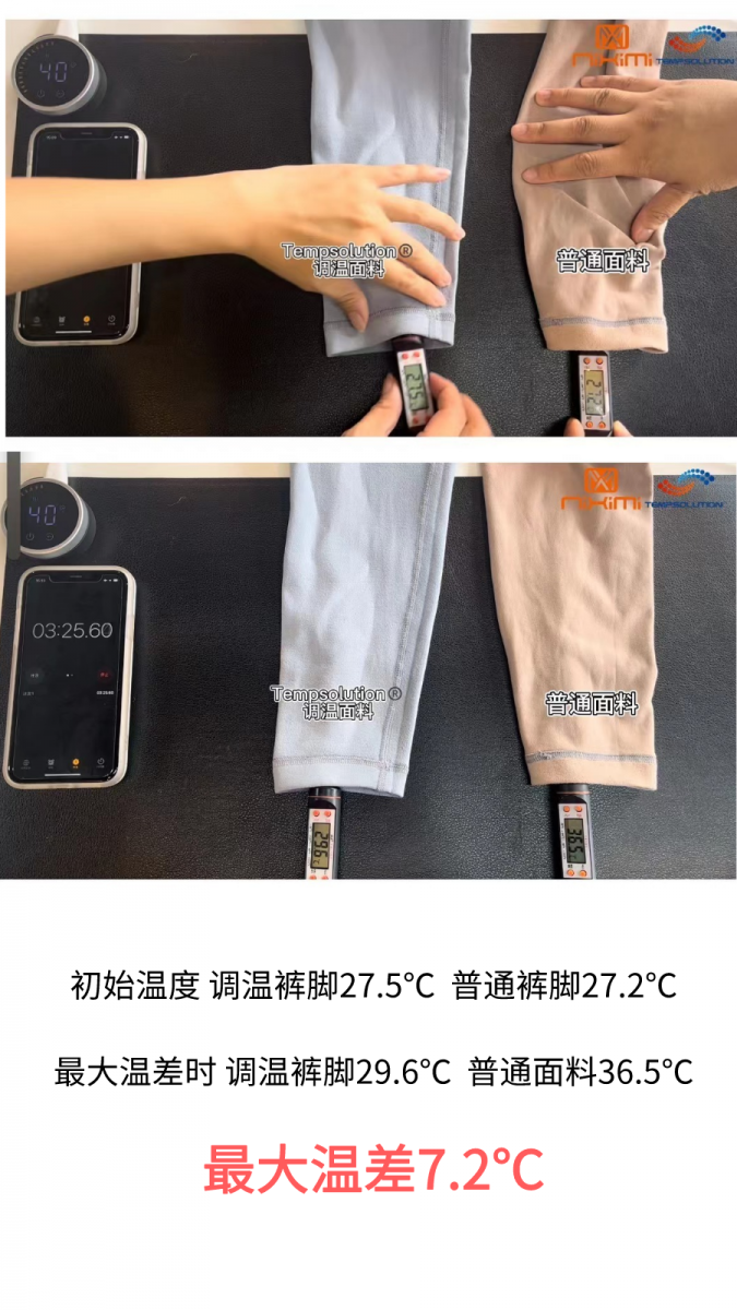 尼希米作為調(diào)溫產(chǎn)品研發(fā)方面的先驅(qū)者,一直堅(jiān)持對(duì)于調(diào)溫產(chǎn)品進(jìn)行迭代升級(jí),確保其效果更加穩(wěn)定。并針對(duì)調(diào)溫纖維、調(diào)溫紗線以及客戶開(kāi)發(fā)的調(diào)溫面料進(jìn)行了多次溫度對(duì)比實(shí)驗(yàn),讓調(diào)溫功能真正看得見(jiàn)。