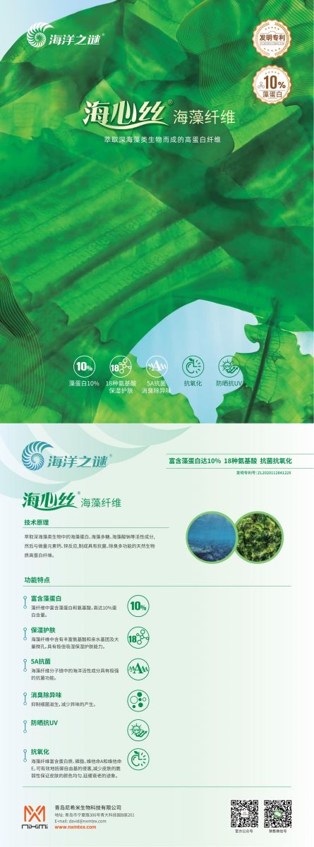 針對(duì)于內(nèi)衣市場(chǎng)一直以來(lái)對(duì)于保濕護(hù)膚的需求,尼希米推出年度重磅新品——海心絲®海藻纖維,藻蛋白含量高達(dá)10%,無(wú)論手感還是保濕性都遙遙領(lǐng)先。